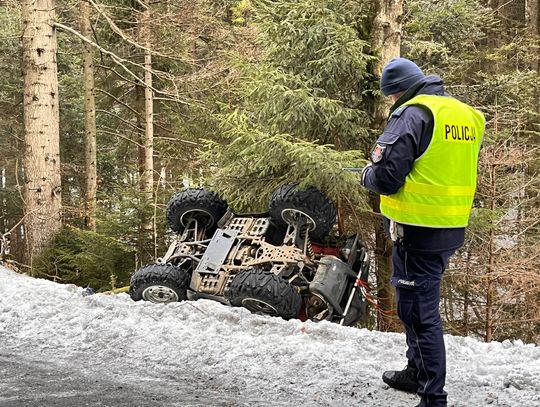 Równolegle do działań ratowniczych, na miejscu zdarzenia pojawili się funkcjonariusze Policji, którzy rozpoczęli zabezpieczanie śladów oraz dokumentowanie okoliczności tego niebezpiecznego incydentu. Mundurowi badają mury oporowe, stan nawierzchni oraz sam pojazd, aby ustalić, czy przyczyną wypadnięcia z drogi była nadmierna prędkość, błąd techniczny maszyny, czy może nagłe zasłabnięcie kierującego. Istotnym elementem śledztwa będzie również sprawdzenie uprawnień kierowcy do prowadzenia quada oraz weryfikacja, czy pojazd był dopuszczony do ruchu i posiadał aktualne badania techniczne.