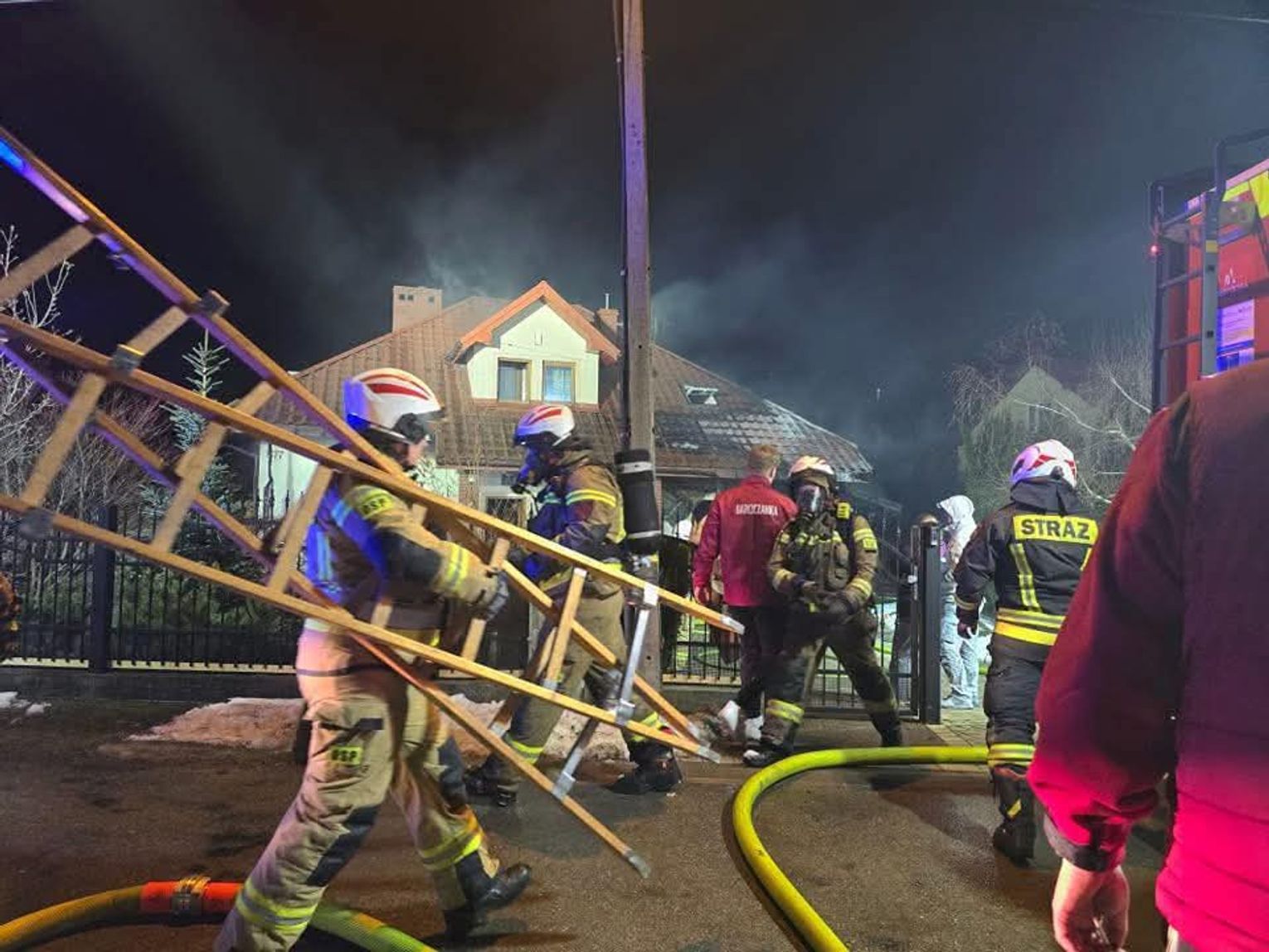 Najważniejszym i najbardziej krzepiącym faktem płynącym z miejsca zdarzenia jest informacja o braku osób poszkodowanych, co świadczy o sprawnej ewakuacji oraz szybkim powiadomieniu służb ratowniczych. Nikt z domowników ani ratowników nie odniósł obrażeń, co w przypadku pożarów budynków mieszkalnych o tak gwałtownym przebiegu uznaje się za sukces operacyjny pracujących na miejscu jednostek. Policja pilnowała porządku wokół posesji, dbając o to, by nikt nieuprawniony nie znalazł się w strefie zagrożenia podczas krytycznych momentów walki z żywiołem.