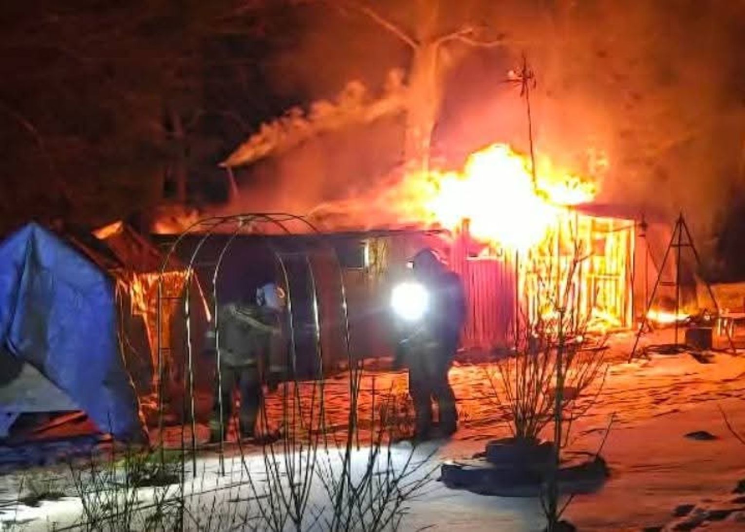 Sytuacja na miejscu była bardzo dynamiczna, ponieważ ogień w krótkim czasie zdołał objąć całą konstrukcję obiektu, tworząc widoczną z oddali łunę ognia nad miejscowością. Wewnątrz płonącego budynku składowane były między innymi specjalistyczne sprzęty ogrodnicze oraz zróżnicowane wyposażenie gospodarskie, które uległy niemal całkowitemu zniszczeniu. Choć akcja gaśnicza była prowadzona z dużą intensywnością, potężna temperatura i szybkość spalania sprawiły, że straty materialne będą znaczne, choć ich dokładna wartość nie została jeszcze oficjalnie oszacowana przez biegłych.