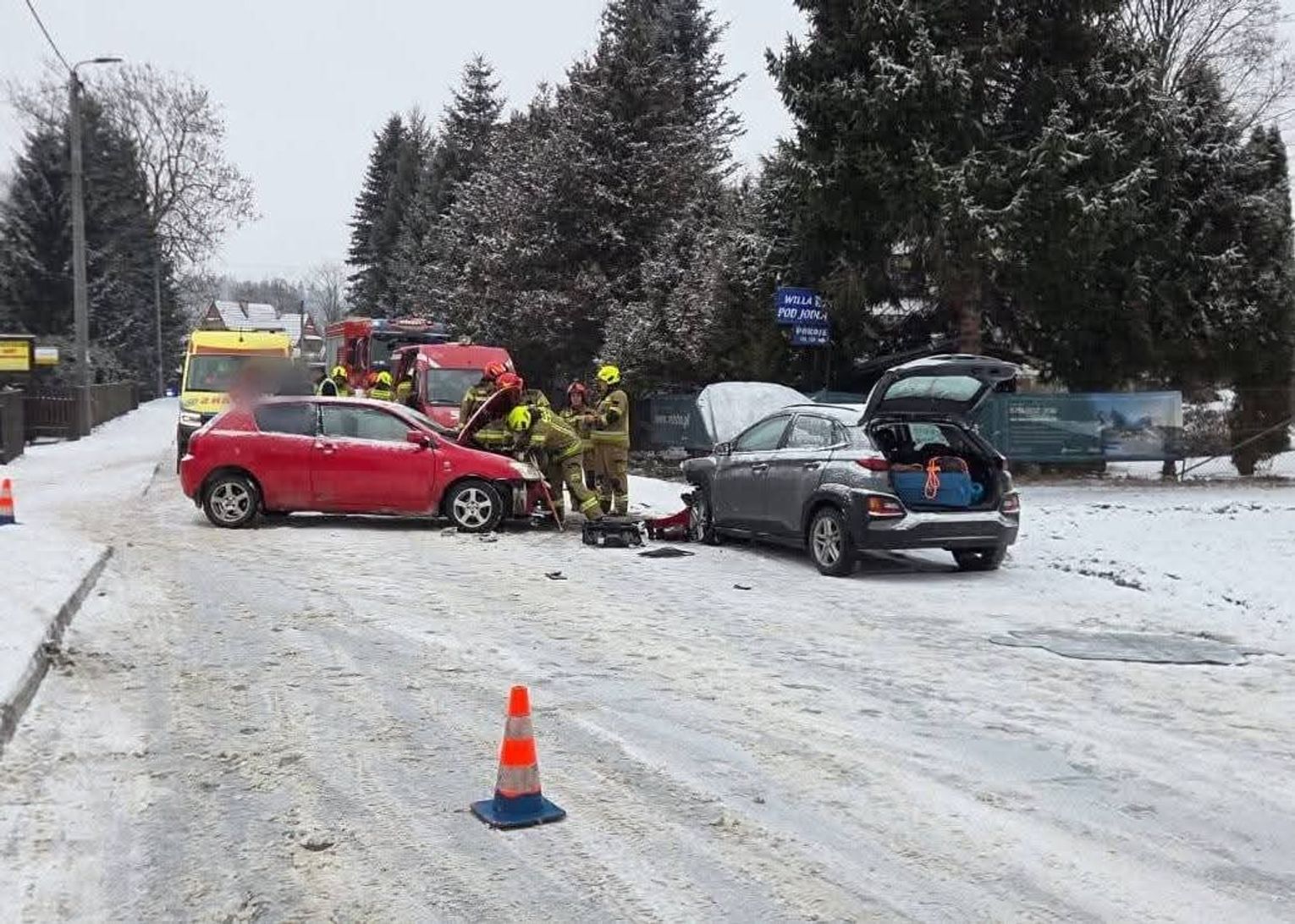 Zaledwie dwie godziny po dramacie w Libertowie, służby otrzymały kolejne wezwanie na Zakopiankę, tym razem do miejscowości Głogoczów. Na lewym pasie drogi krajowej nr 7, w kierunku Zakopanego, doszło do kolizji dwóch samochodów osobowych, co dodatkowo skomplikowało i tak już trudną sytuację komunikacyjną w regionie. Zdarzenie to spowodowało nagłe spowolnienie ruchu na trasie, po której poruszało się wielu turystów powracających lub wyjeżdżających na zimowy wypoczynek.