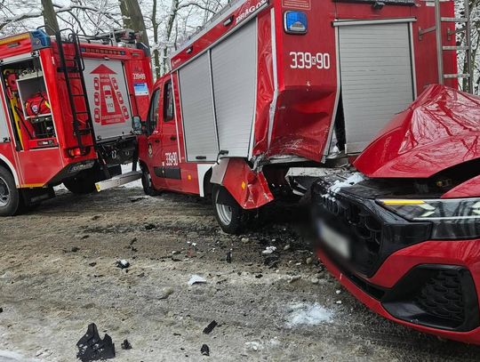 Niestety, podczas prowadzonych działań ratowniczych doszło do wtórnego, niezwykle groźnego zdarzenia, w którym bezpośrednio ucierpiały pojazdy uprzywilejowane. Inny kierujący, prawdopodobnie nie dostosowując prędkości do panujących na drodze warunków, uderzył z dużą siłą w wozy straży pożarnej zabezpieczające miejsce kolizji. Mimo ogromnych strat materialnych i poważnego uszkodzenia sprzętu ratowniczego, bilans osobowy zdarzenia okazał się łaskawy – w wyniku uderzenia nikt nie odniósł obrażeń, a ucierpiały jedynie pojazdy mechaniczne.
