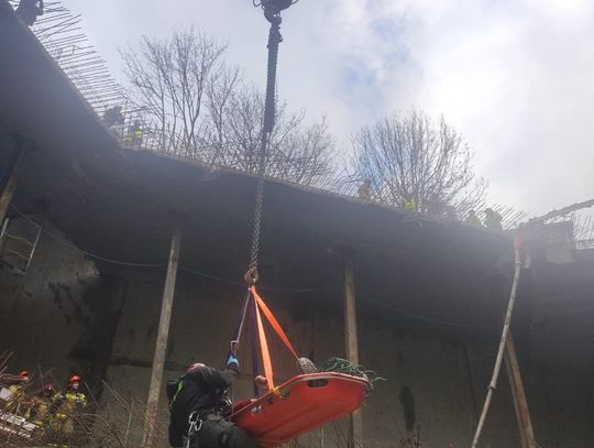 Ze względu na konieczność przeprowadzenia skomplikowanej ewakuacji z dużej głębokości, kierujący działaniem ratowniczym podjął decyzję o wezwaniu wsparcia w postaci Specjalistycznej Grupy Ratownictwa Wysokościowego (SGRW) z JRG 3 Kraków. Ratownicy wysokościowi, posiadający unikalne kompetencje i sprzęt do pracy w pionowych przestrzeniach, przejęli kluczową rolę w przygotowaniu bezpiecznej drogi transportu dla nieprzytomnego mężczyzny. Po dotarciu do poszkodowanego strażacy najpierw wykonali niezbędne medyczne czynności ratunkowe, stabilizując jego funkcje życiowe i zabezpieczając go przed skutkami niskiej temperatury panującej w wykopie, a następnie umieścili go w specjalistycznych noszach typu kubełkowego, które zapewniają pełną stabilizację kręgosłupa i ciała podczas transportu pionowego.