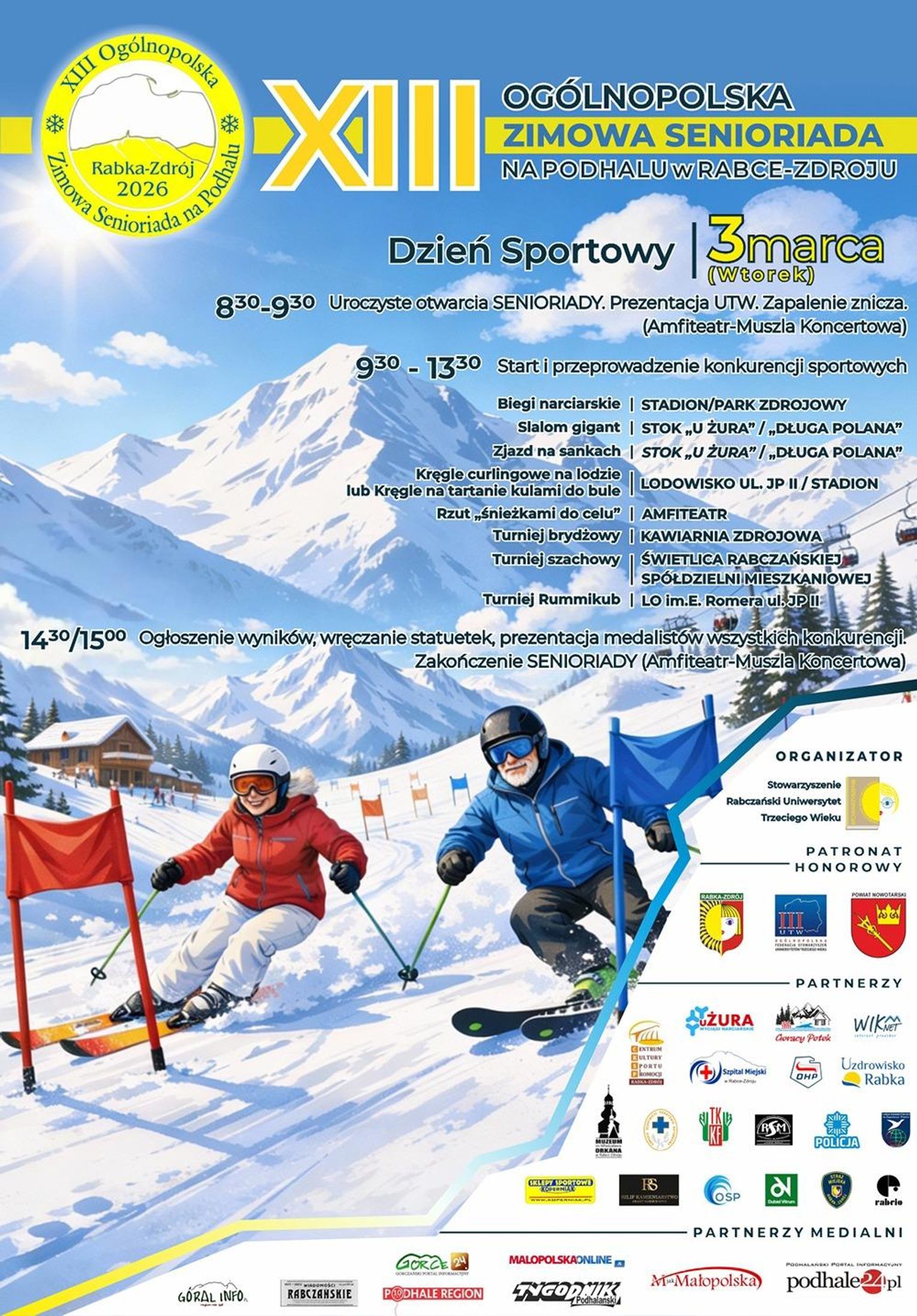 Wyjazd krakowskich seniorów na XIII Ogólnopolską Zimową Senioriadę na Podhalu jest finansowany ze środków Miasta Krakowa, dla uczestników jest bezpłatny.