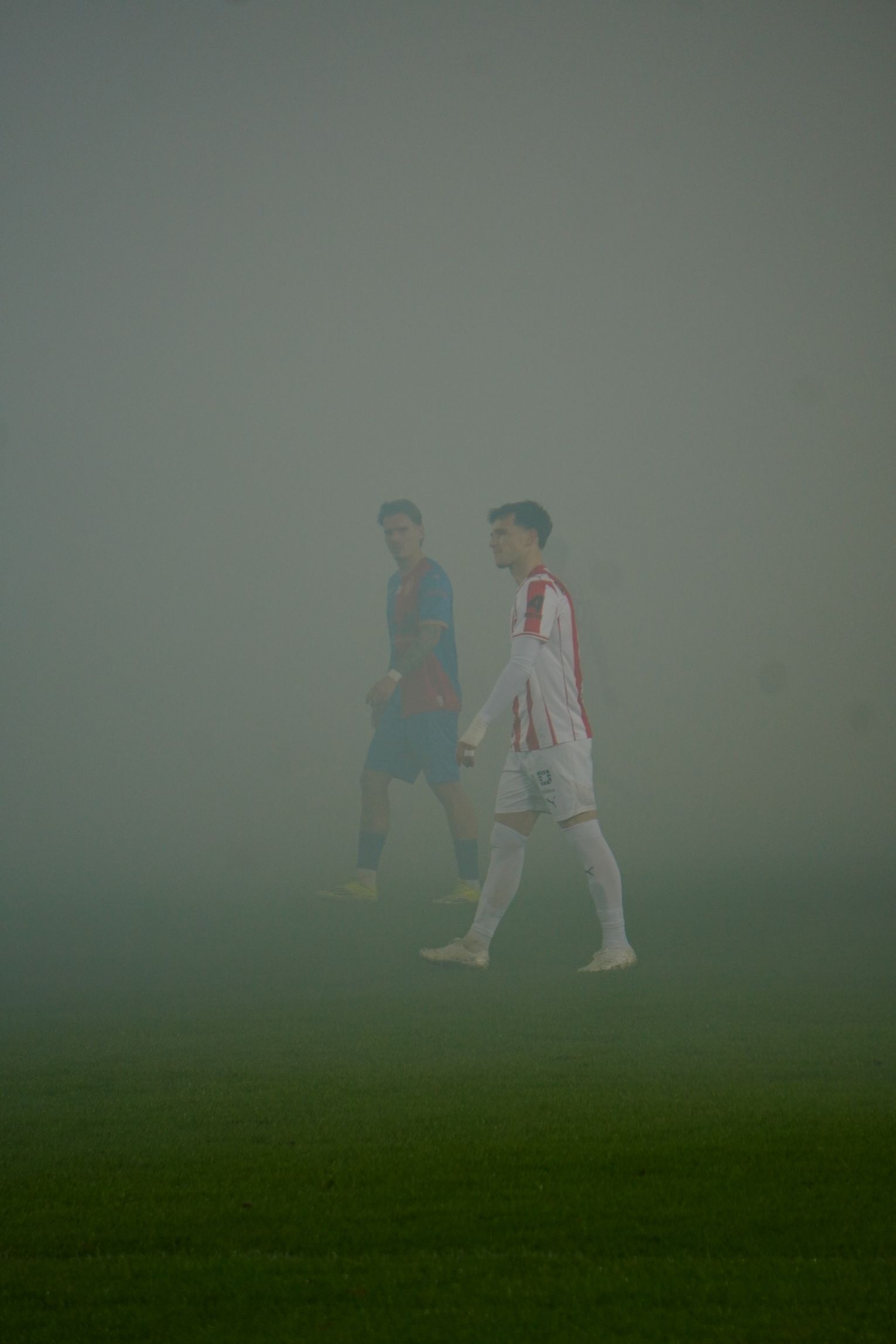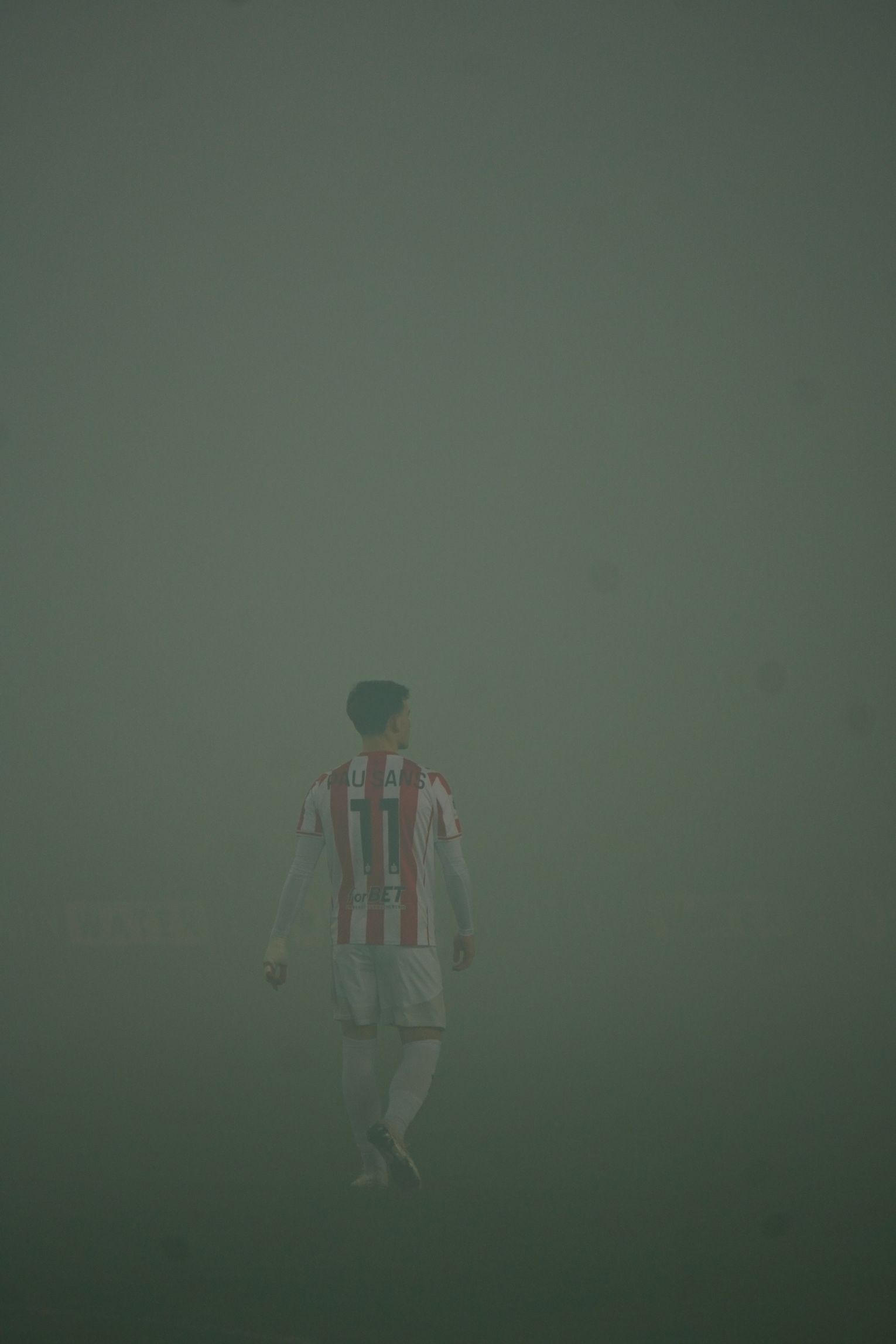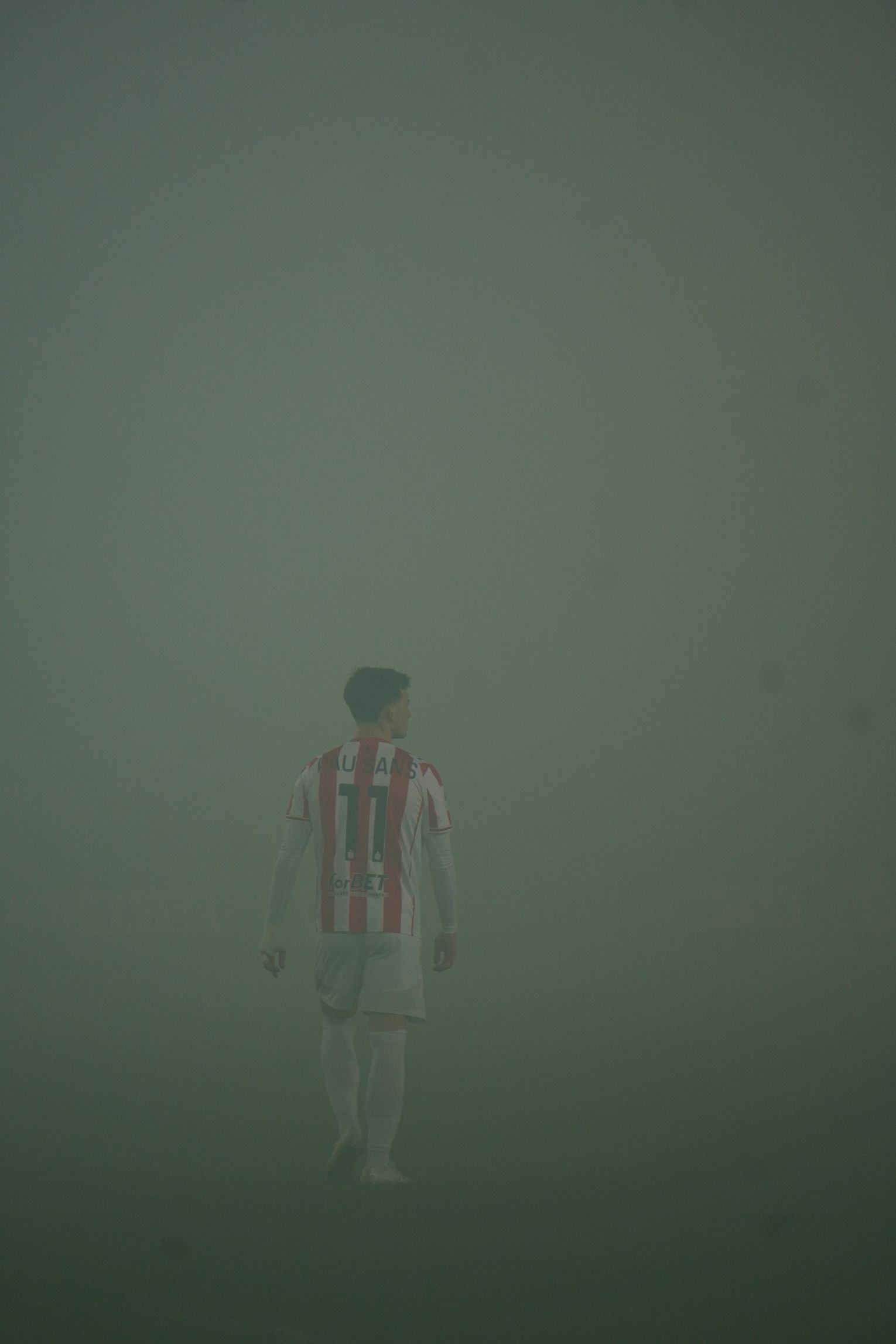 Początkowa faza meczu w Krakowie nie należała do najbardziej porywających widowisk, gdyż oba zespoły skoncentrowały się na defensywie i nie przejawiały większej ochoty do zdecydowanych ataków. Sytuacja zmieniła się około 10. minuty, kiedy sędzia został zmuszony do przerwania gry na blisko siedem minut z powodu gęstego zadymienia boiska wywołanego przez oprawę kibiców. Po wymuszonej pauzie tempo spotkania wzrosło, a zawodnicy obu drużyn zaczęli odważniej operować piłką w strefie podbramkowej, co zapowiadało zbliżające się emocje strzeleckie.