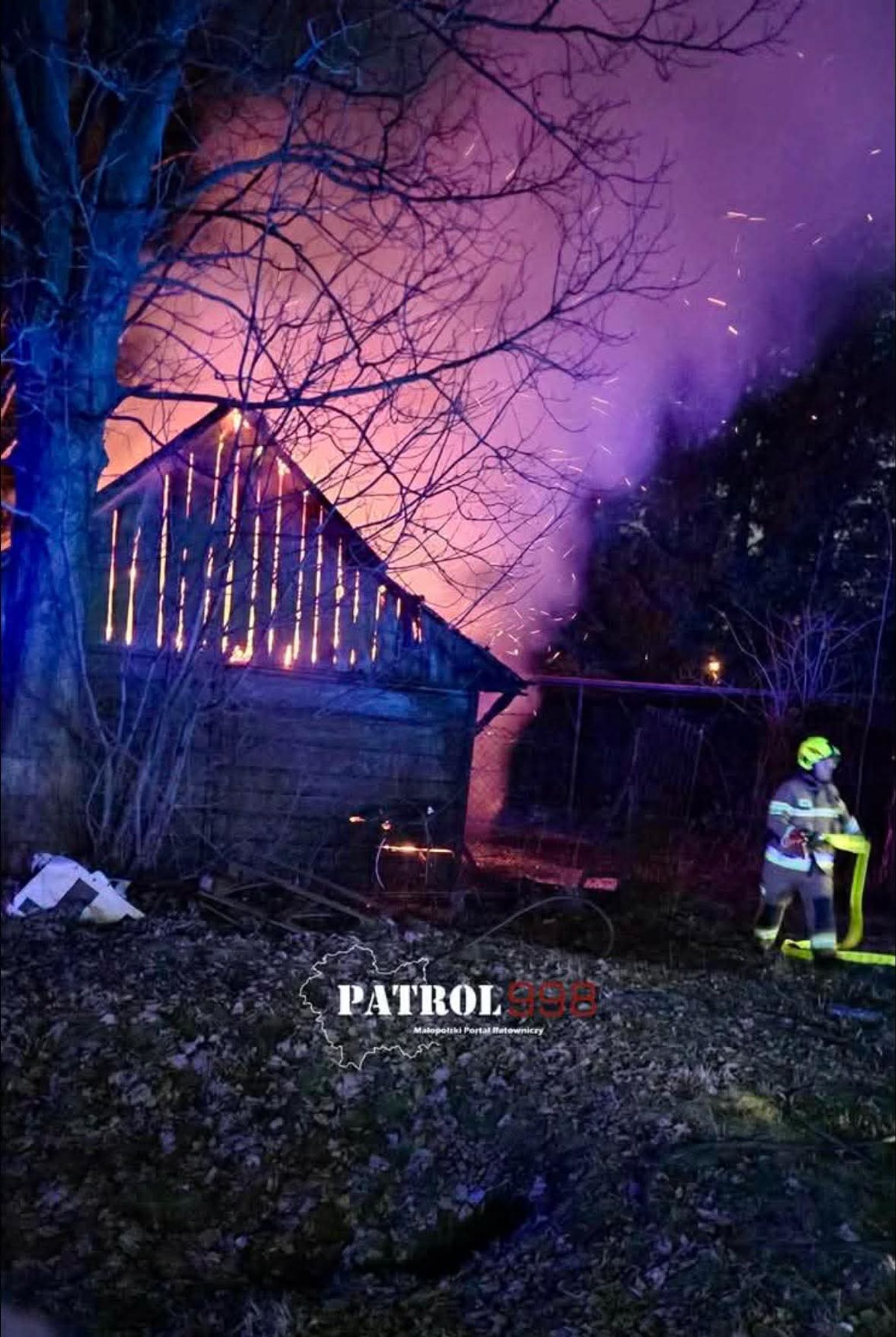 Pożar wybuchł nagle i szybko objął całą konstrukcję drewnianego obiektu, tworząc wysoki słup dymu widoczny z odległości wielu kilometrów. Kiedy pierwsze jednostki straży pożarnej dotarły pod wskazany adres, zastały już w pełni rozwinięty pożar, który zagrażał sąsiednim zabudowom oraz pobliskiej stacji benzynowej. Priorytetem ratowników było nie tylko zduszenie płomieni w samym zarzewiu ognia, ale przede wszystkim stworzenie skutecznej bariery ochronnej, która zapobiegłaby przeniesieniu się pożaru na zbiorniki z paliwem i infrastrukturę techniczną stacji.