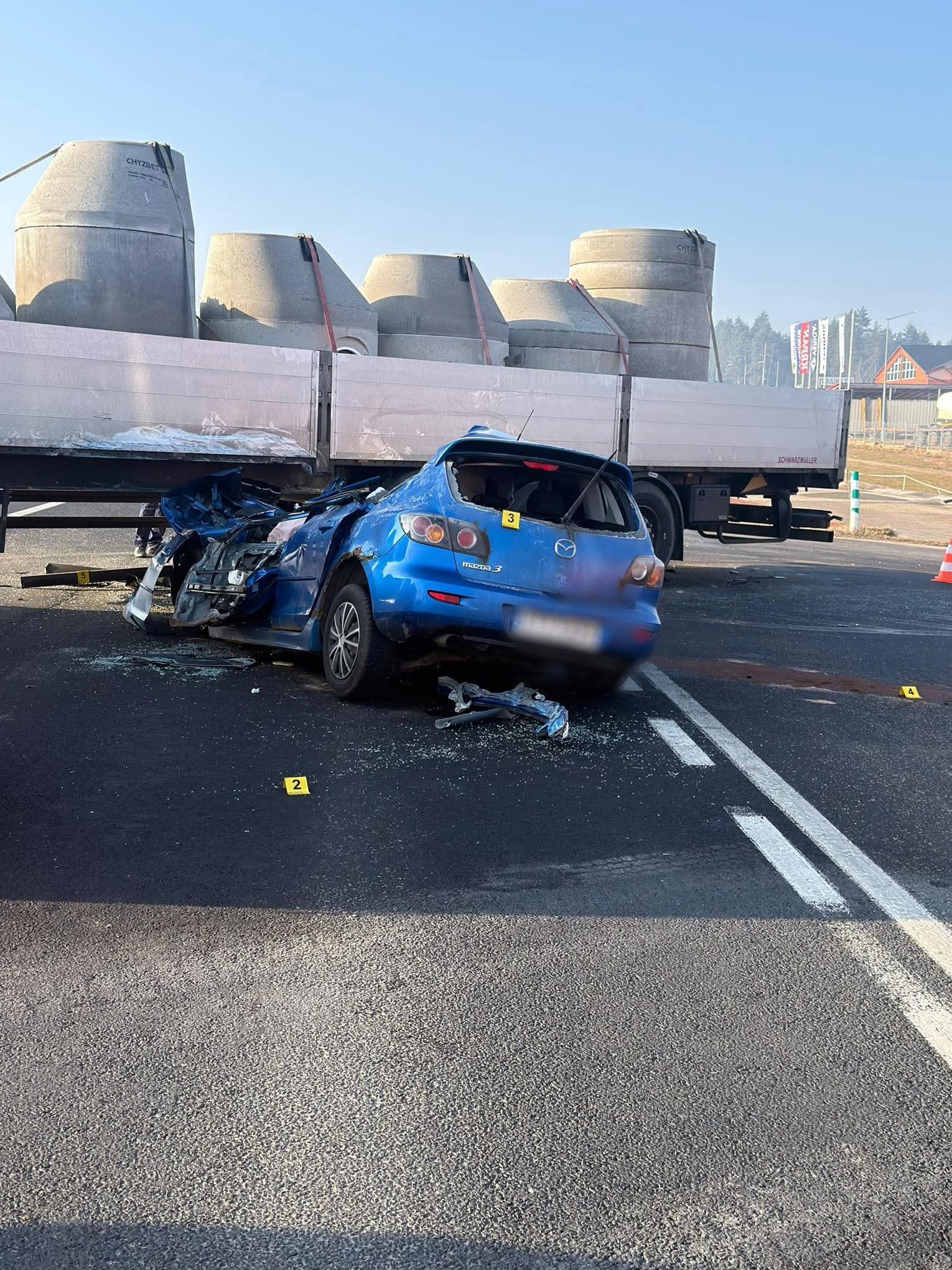 Niestety, siła uderzenia była tak potężna, że 28-letnia kierująca Mazdą poniosła śmierć na miejscu zdarzenia. Służby medyczne, które przybyły na odcinek drogi krajowej nr 7 tuż przed granicą, mogły jedynie stwierdzić zgon młodej kobiety. Śledczy zabezpieczyli oba pojazdy do dalszych badań technicznych, które mają pomóc w wyjaśnieniu, w jaki sposób doszło do kontaktu między tak różnymi gabarytowo środkami transportu na tym prostym teoretycznie odcinku trasy.