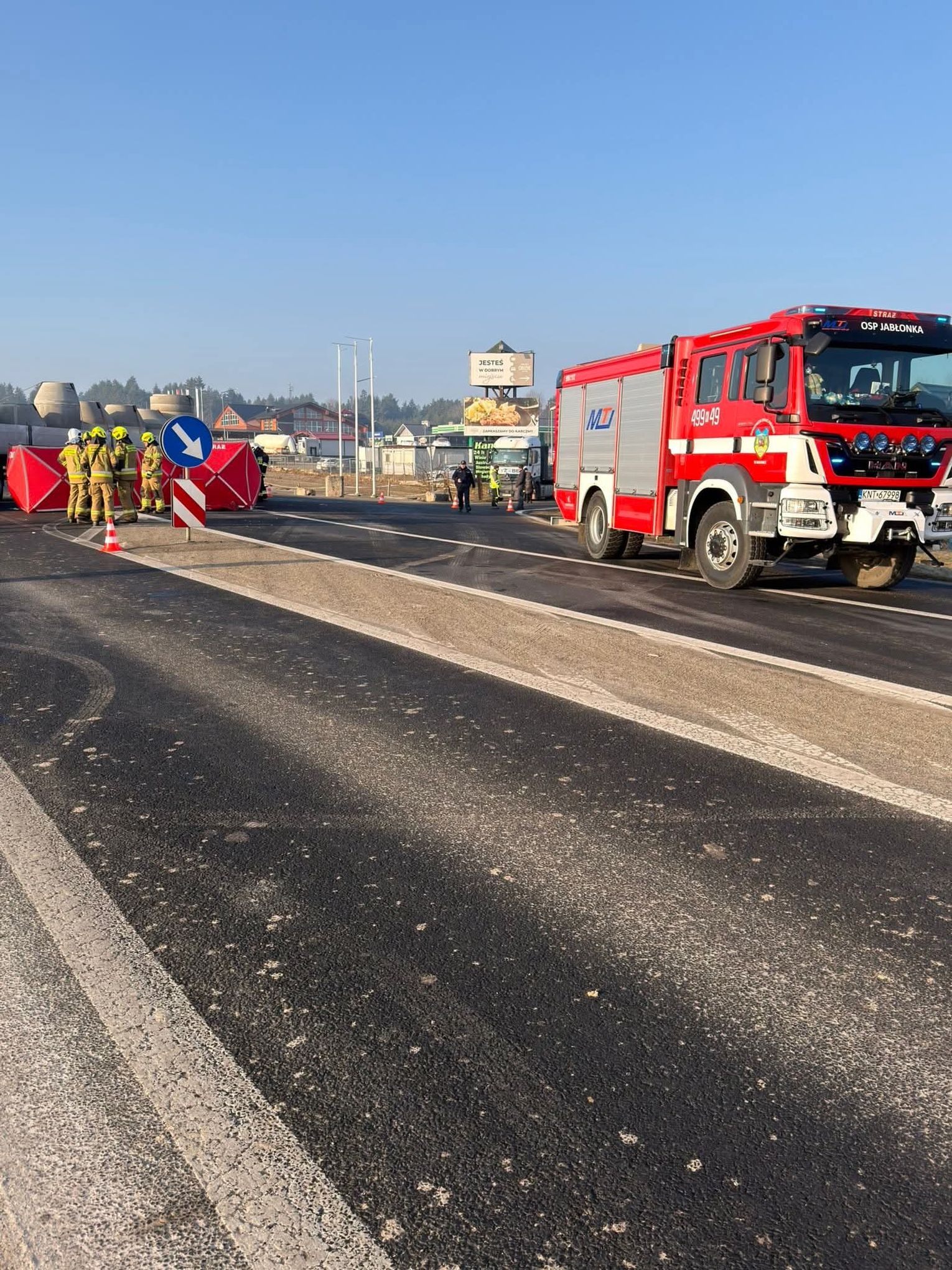 Działania służb ratunkowych i wielogodzinne utrudnienia na drodze krajowej nr 7