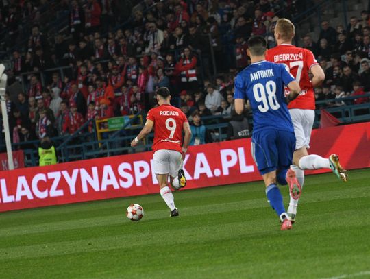 Choć kibice Wisły, cały czas żyją wydarzeniami z Wrocławia, to w liczbie ponad 24 tysięcy, pojawili się na stadionie przy Reymonta. Szybko, bo już w 9. minucie, mieli powód do radości. W polu karnym dobrze odnalazł się Angel Rodado i strzałem z pierwszej piłki, pokonał Ivana Lucicia. 10 minut później, świetną szansę, na wyrównanie, mieli rywale. Marcel Mansfeld miał dużo miejsca, w polu karnym, ale nie potrafił oddać celnego strzału.
