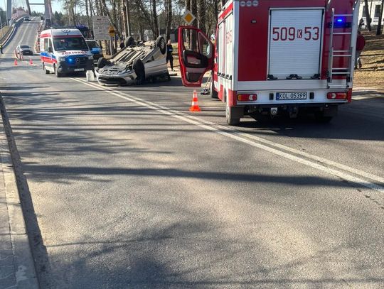 Groźne zderzenie i dachowanie na ulicy Kolejowej w Bukownie