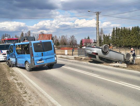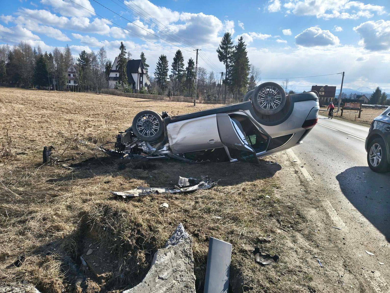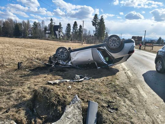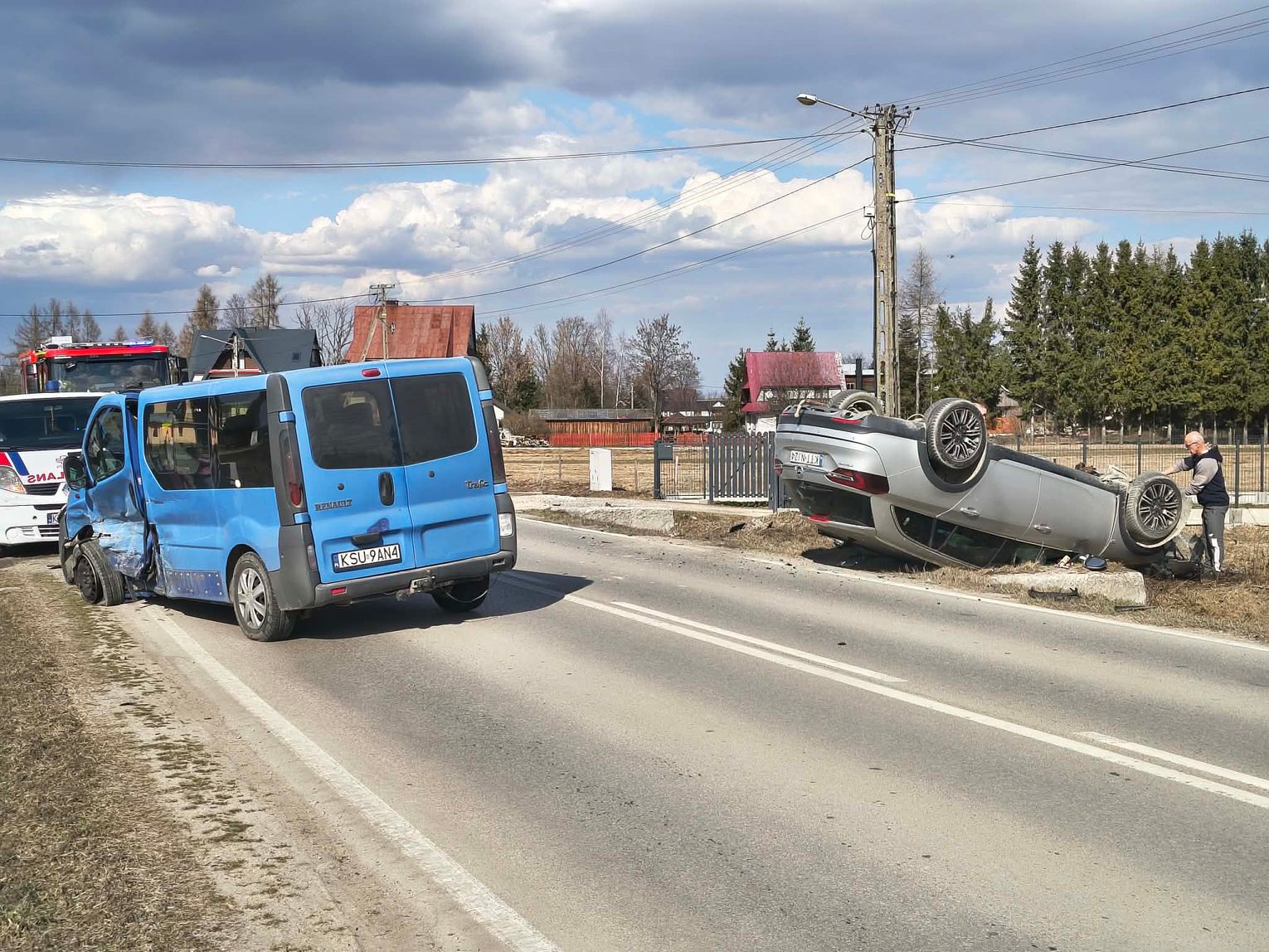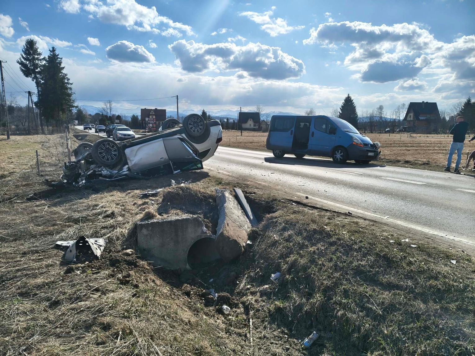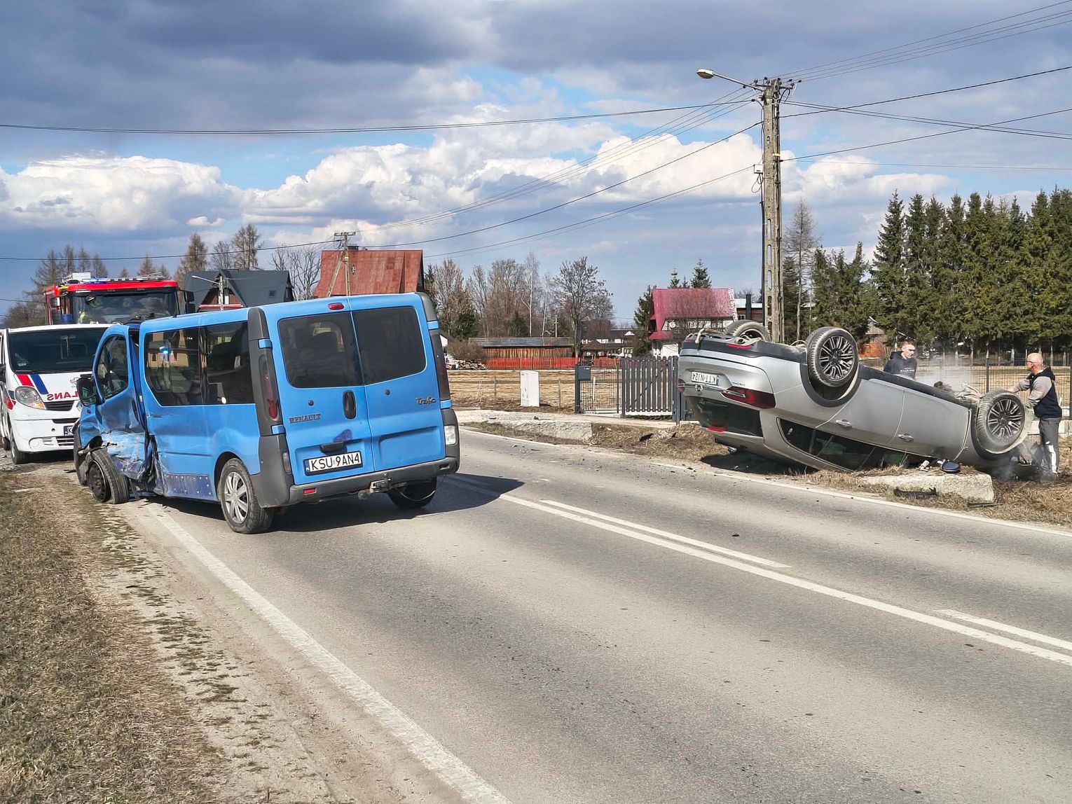 Do zdarzenia doszło w niedzielę 15 marca około godziny 13 na odcinku drogi wojewódzkiej DW958 w gminie Czarny Dunajec. Na granicy miejscowości Chochołów i Koniówka zderzyły się samochód osobowy oraz bus osobowy. Siła uderzenia była na tyle duża, że osobówka wypadła z drogi i wylądowała na dachu.