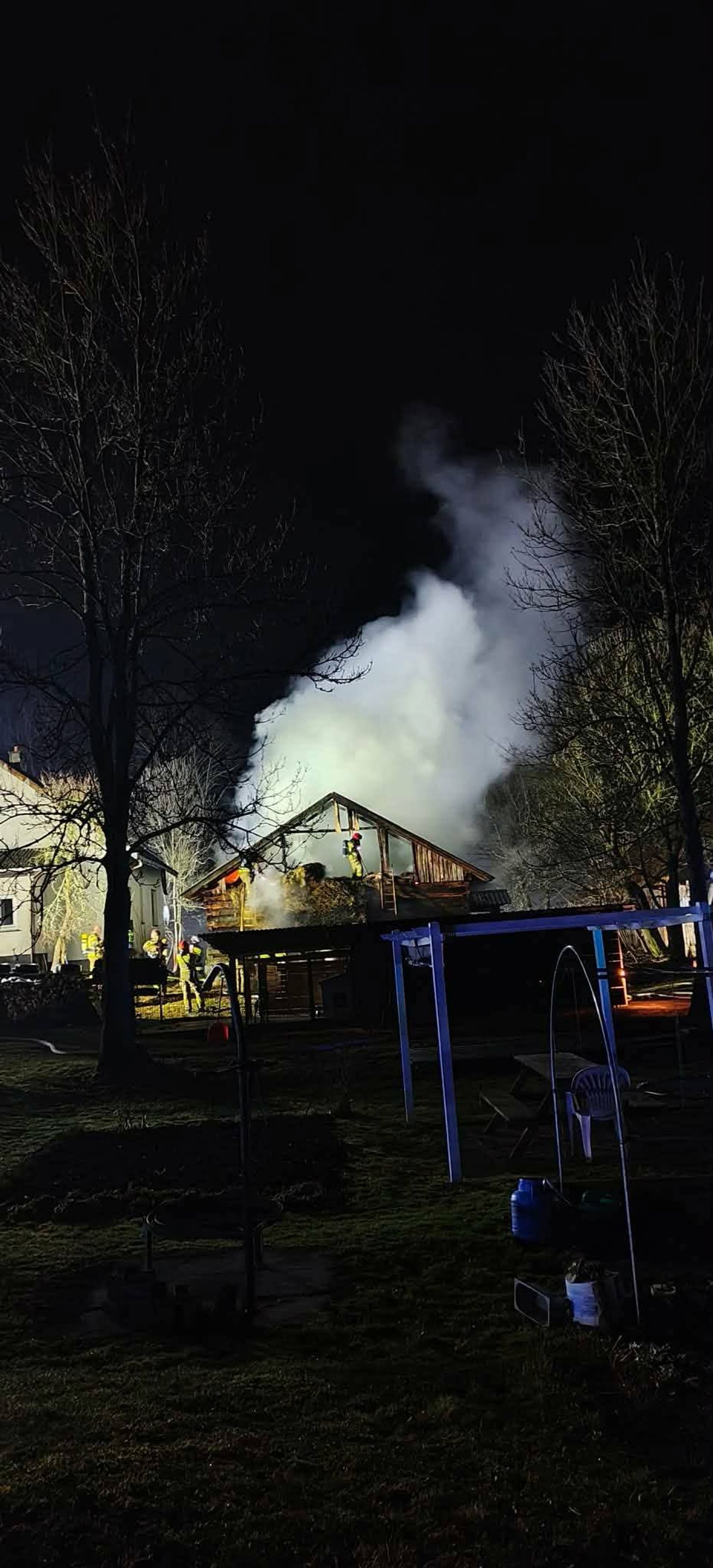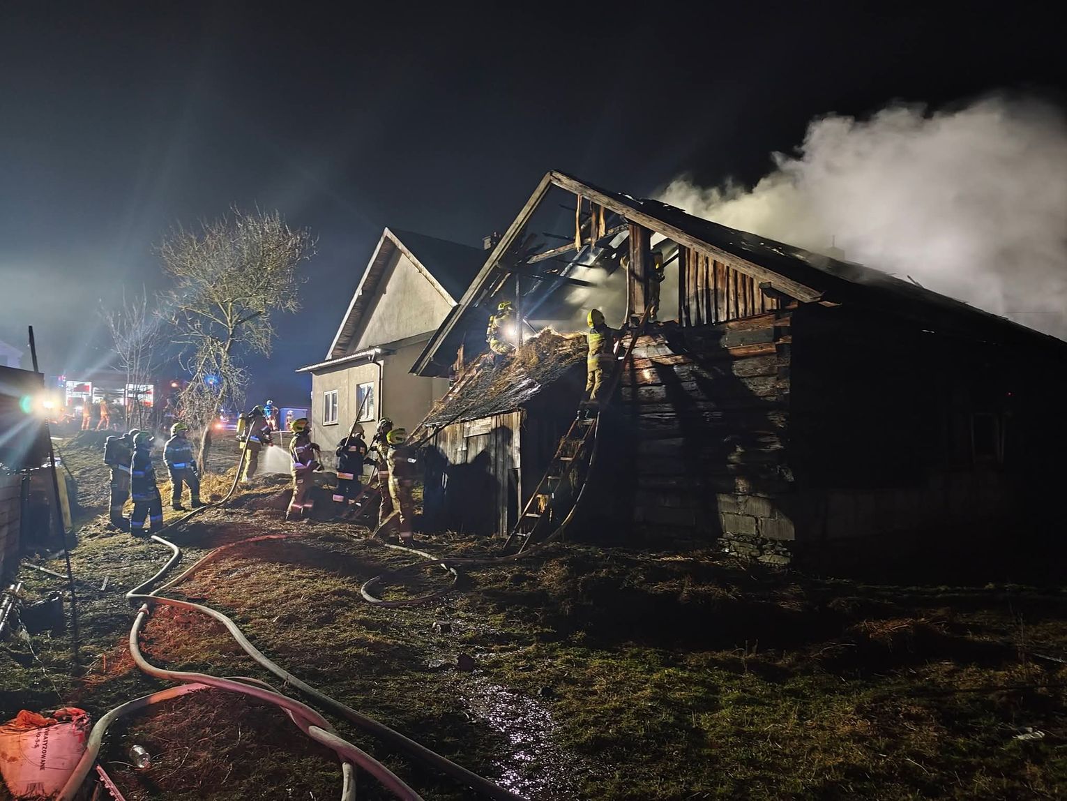 Mimo groźnie wyglądającej sytuacji i dużego zadymienia, które spowiło okolicę w godzinach wieczornych, kluczową informacją przekazaną przez dowódców akcji był całkowity brak osób poszkodowanych. Budynek w momencie wybuchu ognia był niezamieszkany, co pozwoliło strażakom w pełni skoncentrować się na działaniach gaśniczych oraz obronie pobliskiej infrastruktury. Sytuacja wymagała ogromnej precyzji, gdyż wieczorne warunki oraz lokalizacja obiektu stawiały przed ratownikami dodatkowe wyzwania logistyczne związane z zaopatrzeniem wodnym.