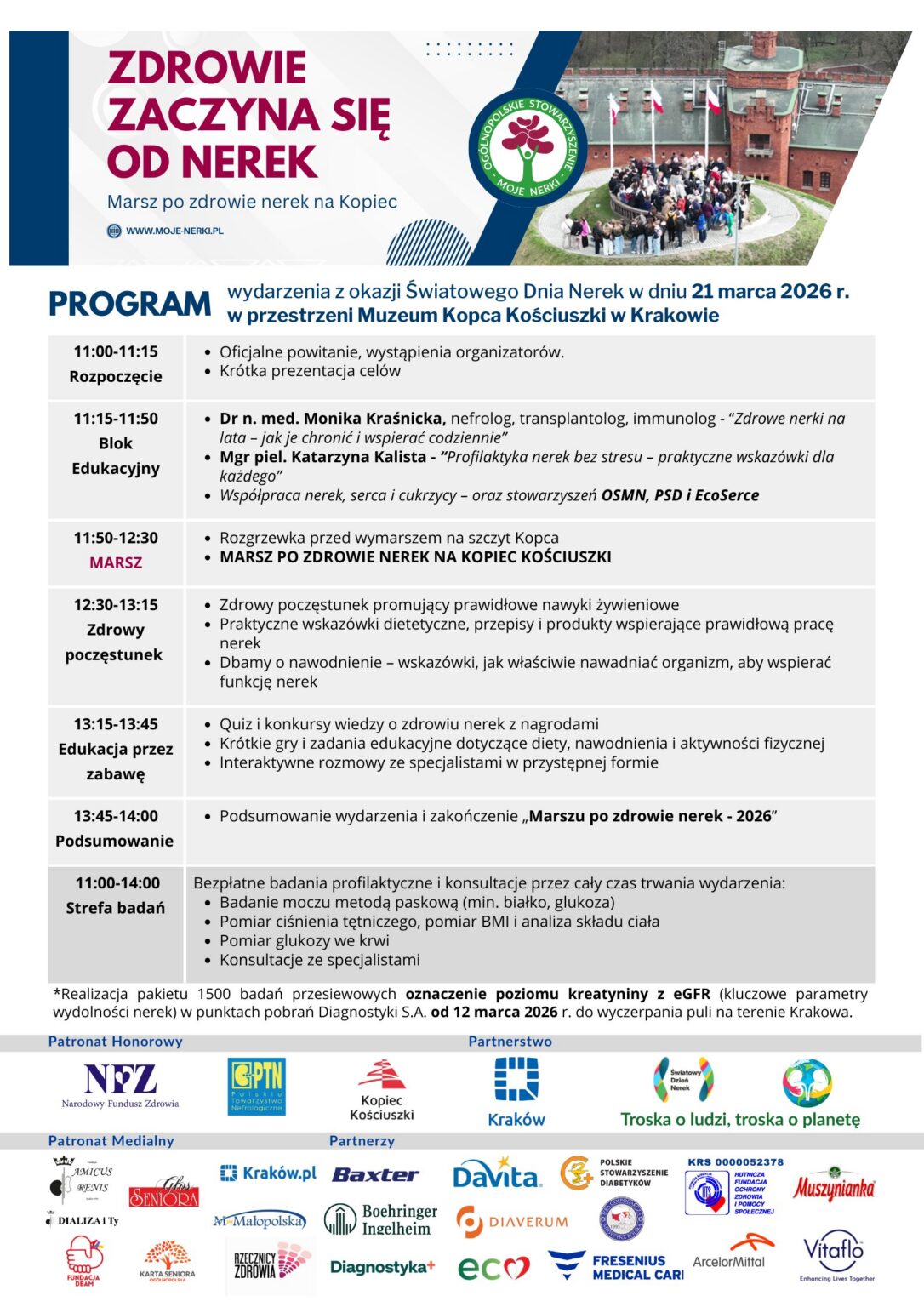 Wydarzenie odbywa się pod Patronatem Honorowym Prezydenta Miasta Krakowa, Narodowego Funduszu Zdrowia oraz Polskiego Towarzystwa Nefrologicznego.
