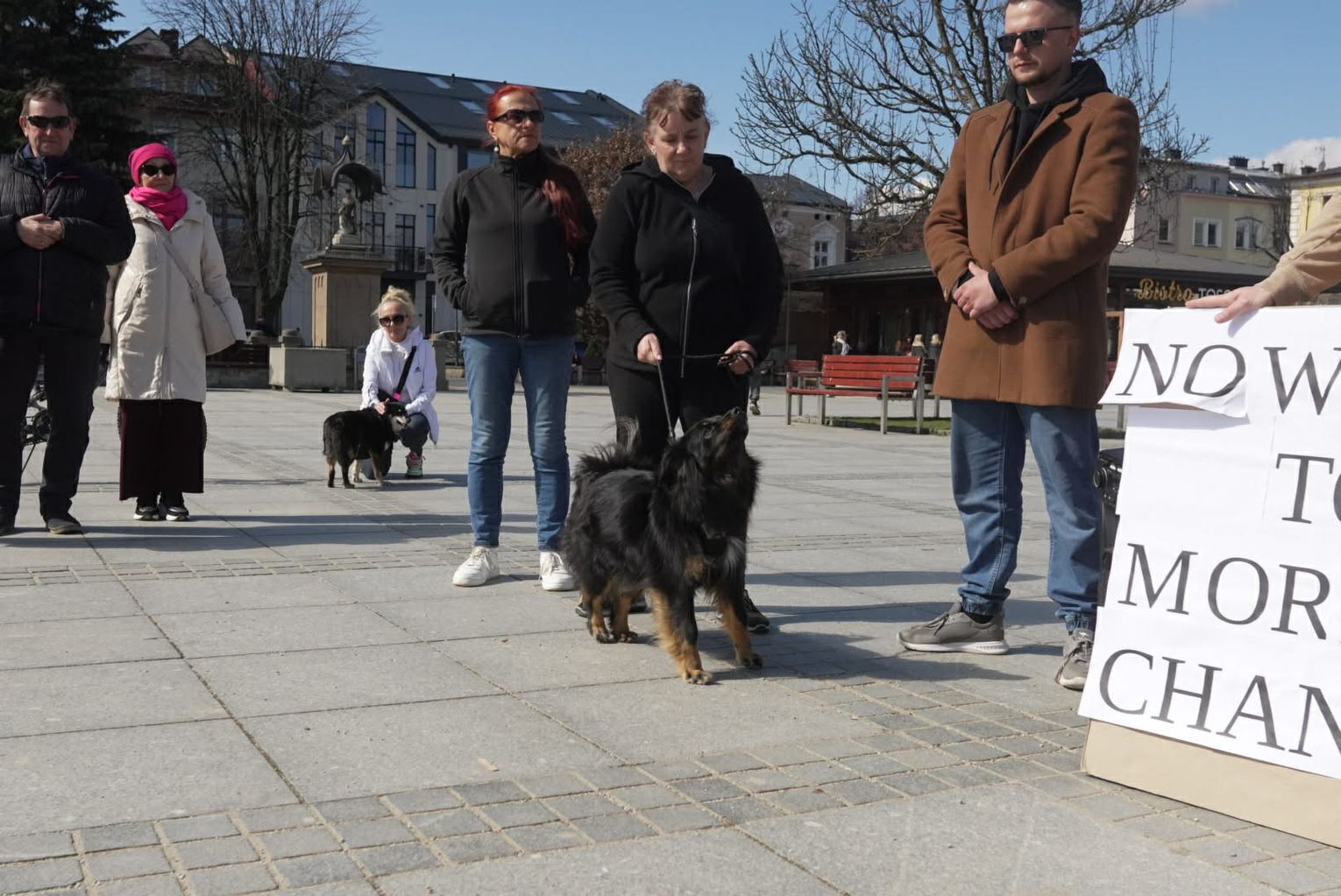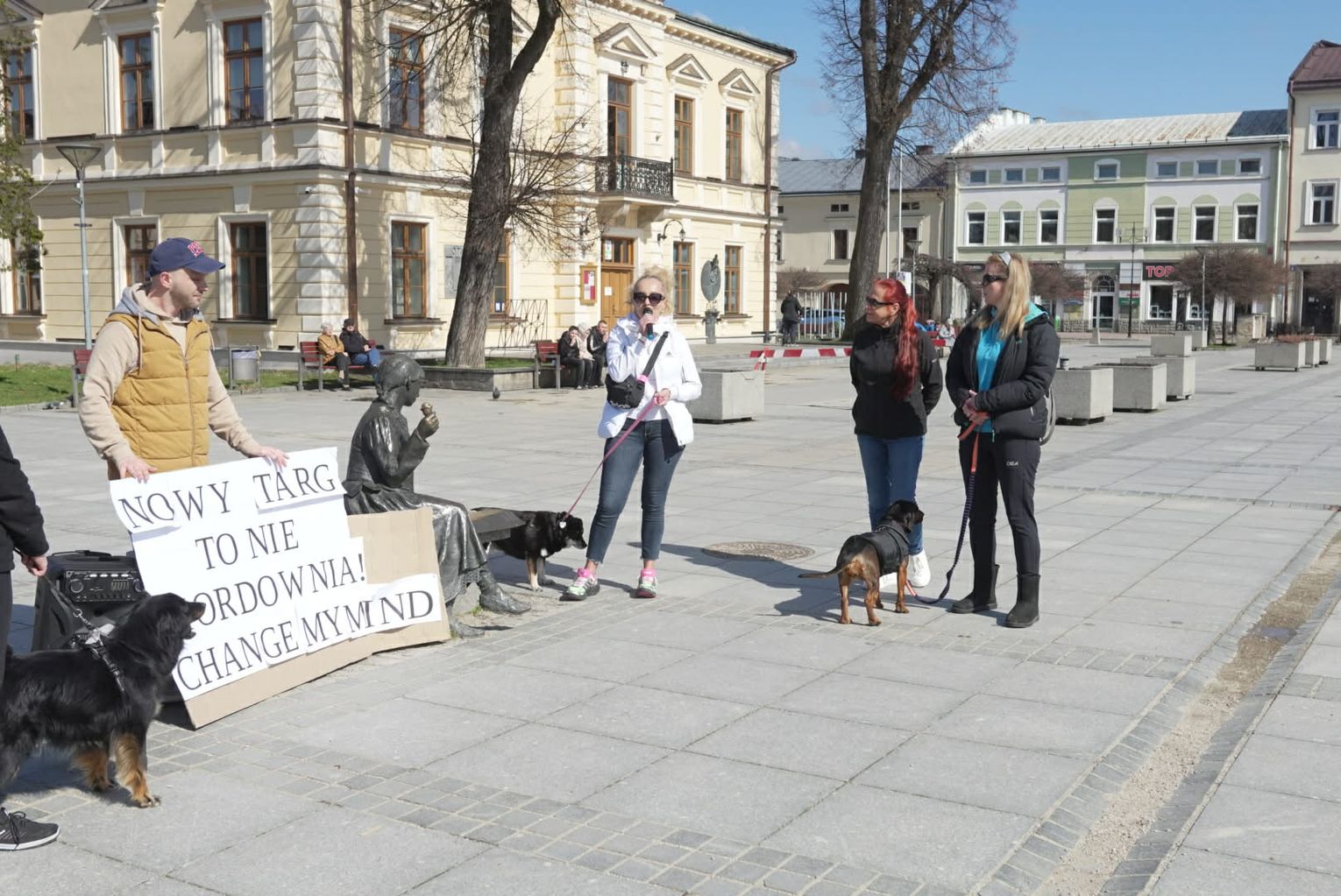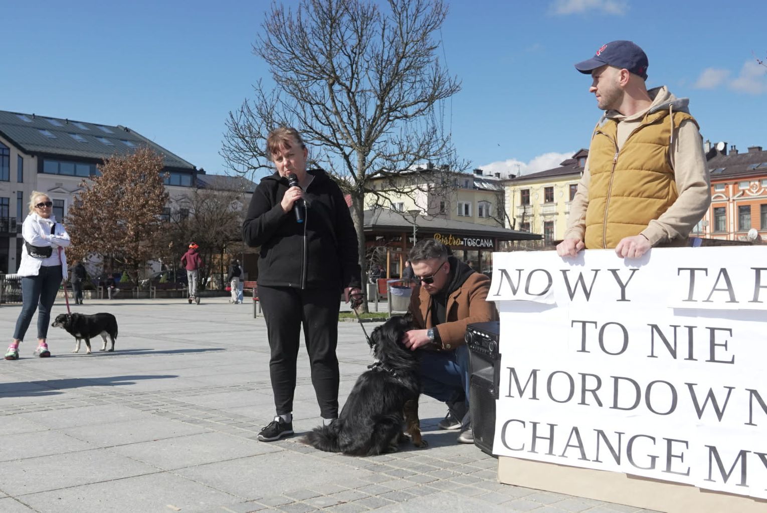 Równolegle do wydarzeń na Kokoszkowie, na nowotarskim Rynku zebrała się grupa osób o zupełnie innym spojrzeniu na sytuację. Manifestacja zorganizowana przez Krzysztofa Pierchlaka miała na celu obronę dobrego imienia rodziny Pawluśkiewiczów oraz sprzeciw wobec fali hejtu, która w ostatnim czasie zalała internet. Uczestnicy tego wiecu, często przychodzący ze swoimi psami adoptowanymi właśnie z tego schroniska, przekonywali, że opinie krążące w sieci są niesprawiedliwe i krzywdzące dla ludzi, którzy od lat oddają serce opiece nad zwierzętami.