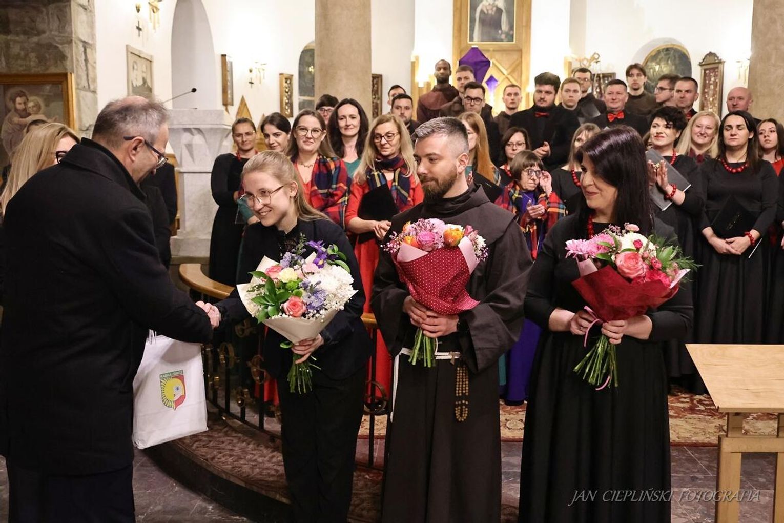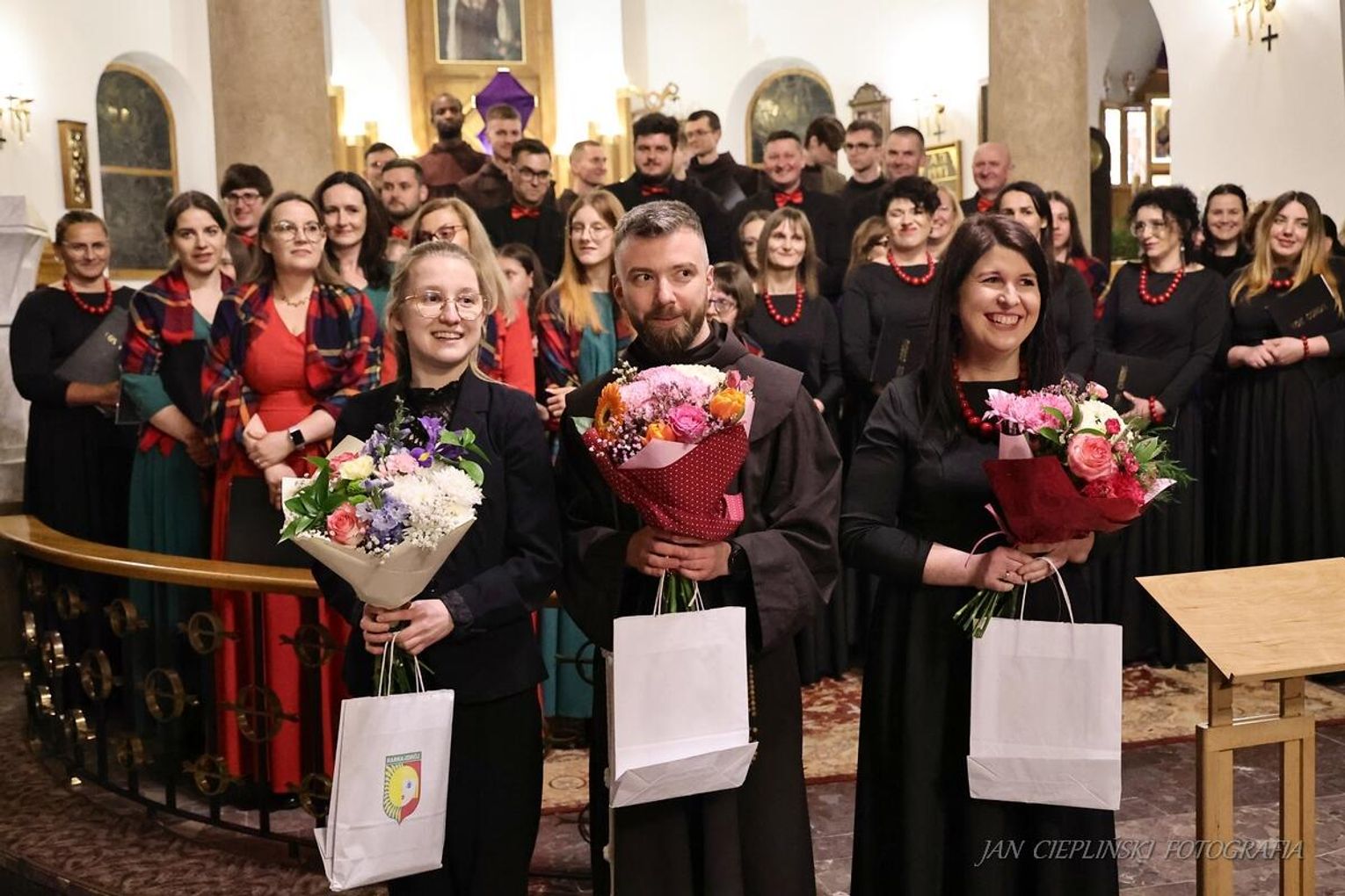 Program artystyczny wieczoru zachwycał różnorodnością i wysokim poziomem wykonawczym, prezentując kunszt zarówno profesjonalnych formacji, jak i lokalnych zespołów. Niezwykle podniosły nastrój wprowadziła Schola Cantorum OO. Bernardynów, której interpretacje dawnych śpiewów sakralnych idealnie korespondowały z surowością wielkopostnej liturgii. Równie poruszający był występ Chóru Vox Cordis, który swoimi precyzyjnymi harmoniami i głębią brzmienia udowodnił, że muzyka pasyjna wciąż potrafi dotykać najczulszych strun ludzkiej duszy, budząc autentyczne wzruszenie wśród zgromadzonej publiczności.