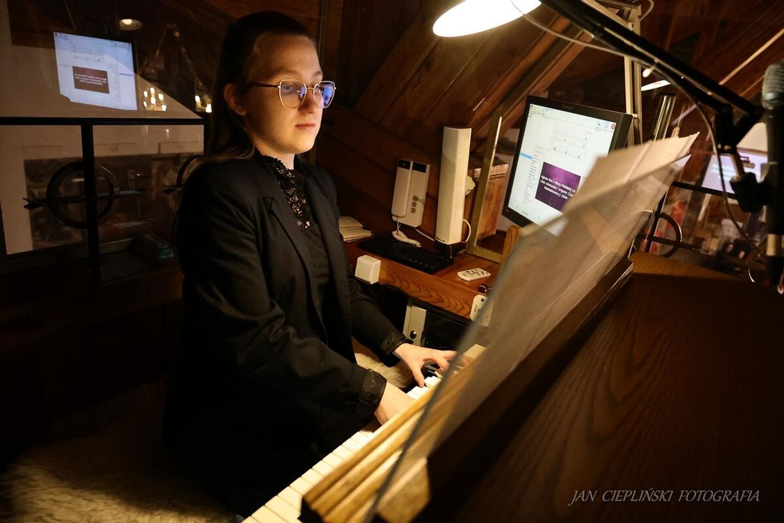 Fundamentem dla wokalnych popisów była wirtuozerska gra na organach w wykonaniu Miriam Wójciak. Artystka z niezwykłą wrażliwością wydobywała z instrumentu pełną gamę barw – od subtelnych, niemal szeptanych dźwięków, po potężne akordy wypełniające każdy zakątek świątyni. Jej muzyczne komentarze i improwizacje stanowiły spoiwo całego koncertu, nadając mu płynność i sprawiając, że poszczególne części programu układały się w jedną, spójną opowieść o cierpieniu, nadziei i ostatecznym zwycięstwie dobra.