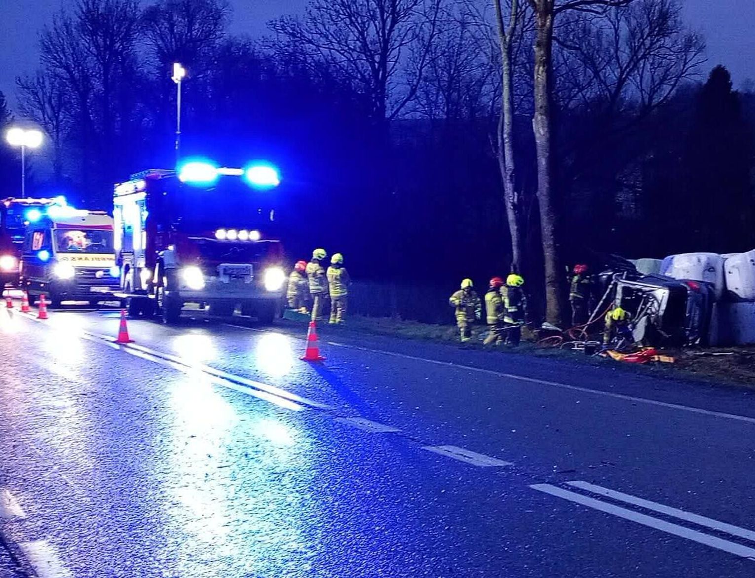 Służby ratunkowe zostały zaalarmowane natychmiast po otrzymaniu zgłoszenia o incydencie, a na miejsce skierowano jednostki o najwyższym stopniu gotowości operacyjnej. Pierwsze zastępy, które dotarły pod wskazany adres, potwierdziły dramatyczny przebieg zdarzenia oraz konieczność przeprowadzenia skomplikowanej akcji ratunkowej z wykorzystaniem specjalistycznego sprzętu technicznego. Miejsce wypadku zostało niezwłocznie zabezpieczone, aby umożliwić ratownikom swobodne działanie oraz wyeliminować ryzyko wystąpienia dodatkowych zagrożeń, takich jak pożar czy najechanie kolejnych pojazdów na miejsce kolizji.