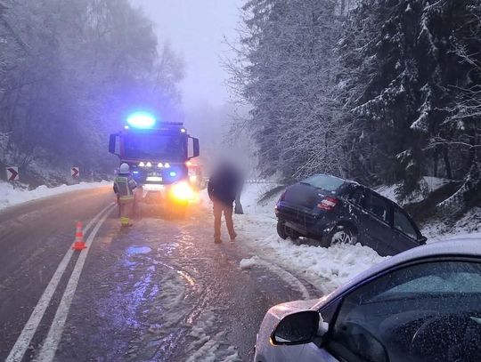 Utrudnienia na starej Zakopiance w Skomielnej Białej po wypadnięciu auta z jezdni