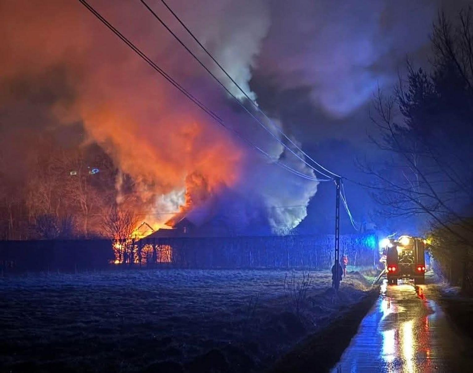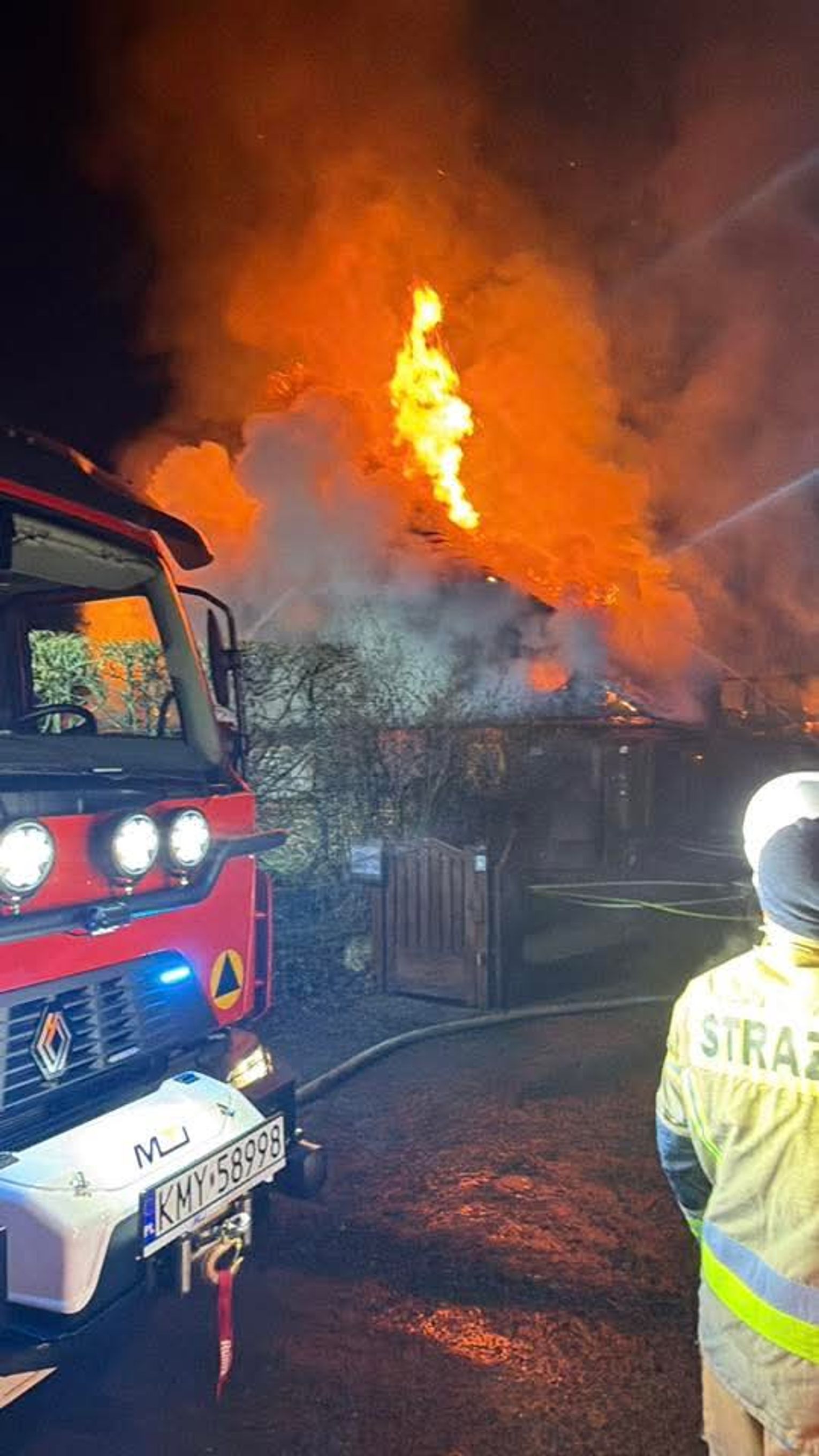 Sytuacja na miejscu zdarzenia wciąż pozostaje bardzo dynamiczna i na ten moment nie została jeszcze w pełni opanowana przez pracujących tam ratowników. Strażacy koncentrują swoje wysiłki na bezpośrednim gaszeniu płomieni oraz zabezpieczaniu terenu wokół płonącego obiektu, aby uniemożliwić dalszą ekspansję ognia na sąsiednie zabudowania. Trwająca akcja ratunkowa ma charakter priorytetowy, a służby robią wszystko, by jak najszybciej zneutralizować zagrożenie w nocnych warunkach.